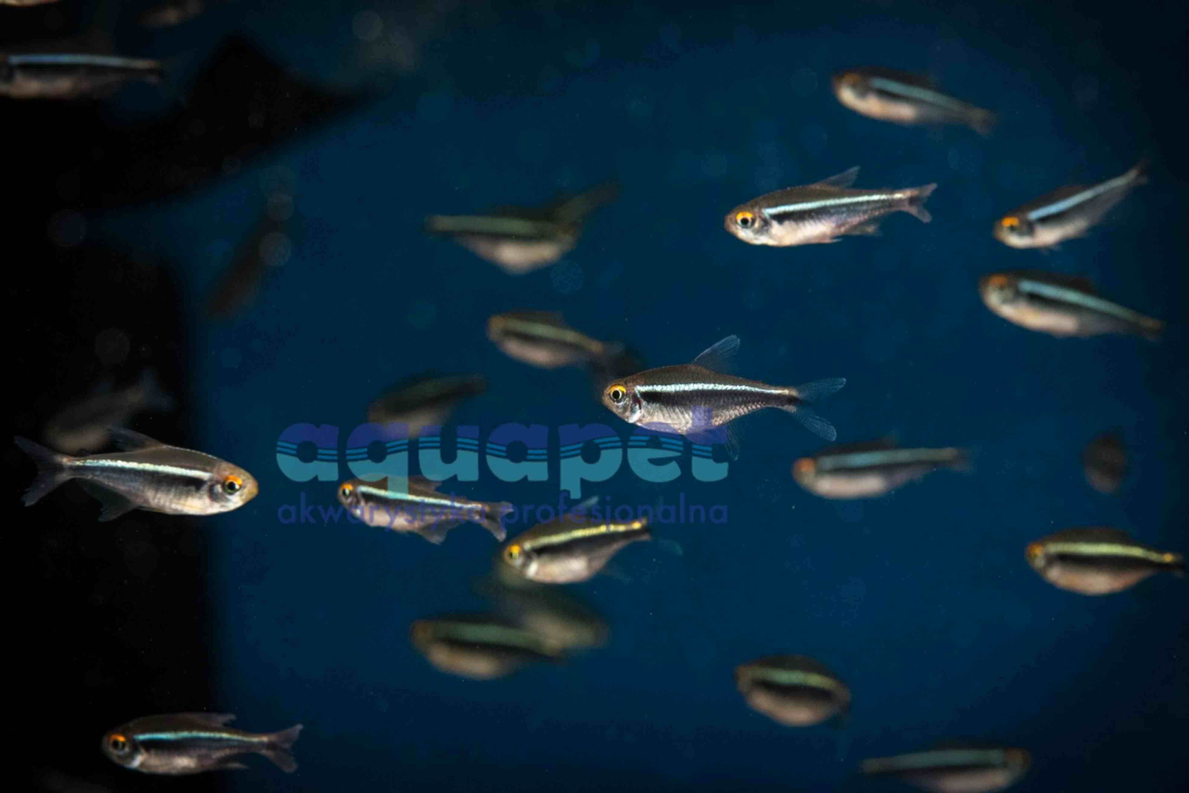 Neon czarny, Bystrzyk Axelroda (Hyphessobrycon herbertaxelrodi) jest bardzo popularną ławicowa rybą akwariową. Ta mała, rybka dorasta do około 4 cm i pochodzi ze słodkich wód Ameryki Południowej. Preferuje akwaria roślinne, w których tworzy ławice liczące nawet kilkaset osobników. Taka ławica wspaniale się prezentuje w szczególności w towarzystwie ławicy innego gatunku neonów (sprawdź np. neon innesa, neon czerwony, neon zielony).